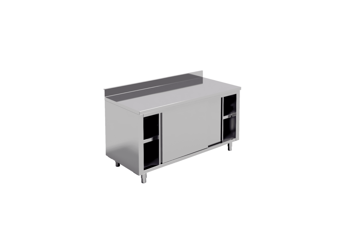 SS 304 AISI Work table with under shelf and back splash adjustable legs/mobile wheels Code1 L W1 H Code2 W2