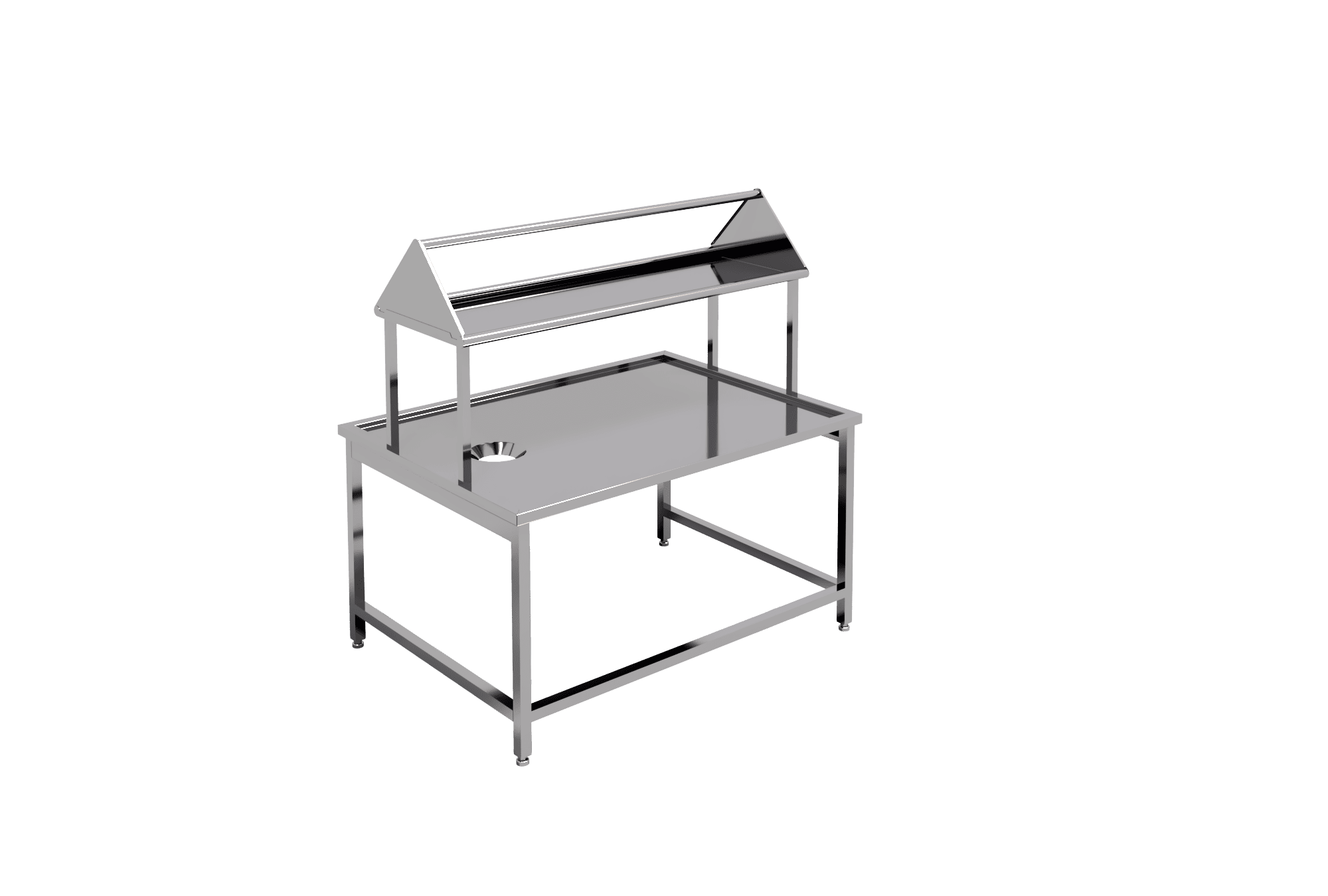 SS 304 AISI Solid Dish Sorting Table with upper rack shelf and trash hole.