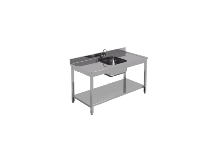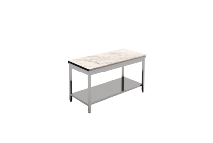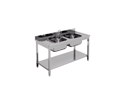 SS 304 AISI Work table with under shelf and drawers back splash and adjustable legs.