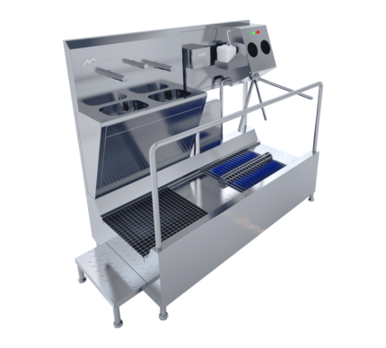 •Hygiene Station: •with access control. •with double hand wash sink with outlet tap with sensor. •with pass through shoes cleaner